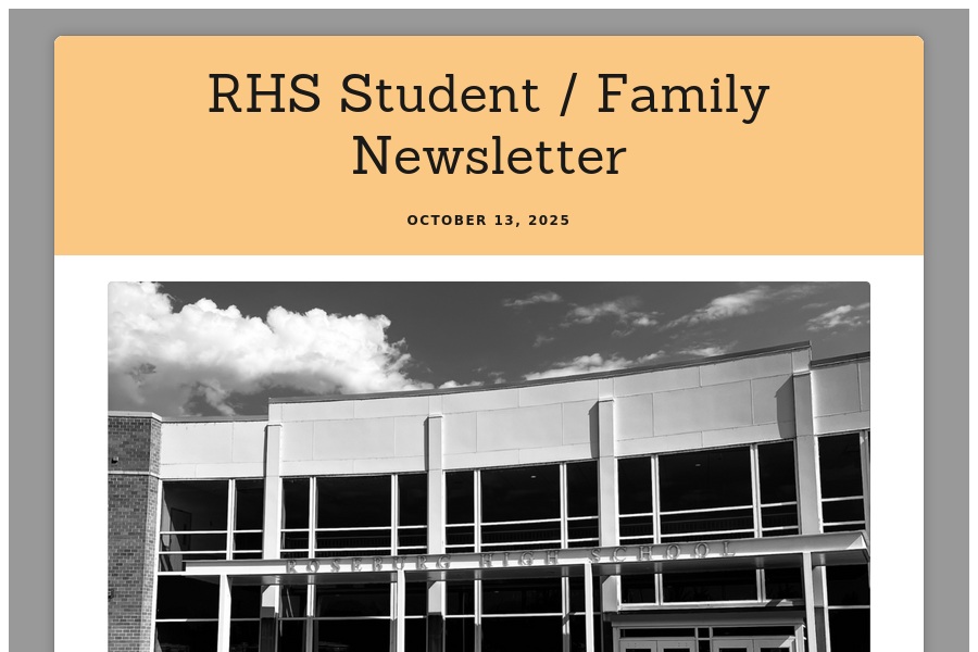 Roseburg High School is a place of opportunity to attain knowledge and become productive, independent citizens who live PRIDE (Positive, Respectful, Involved, Determined and Encouraging)!